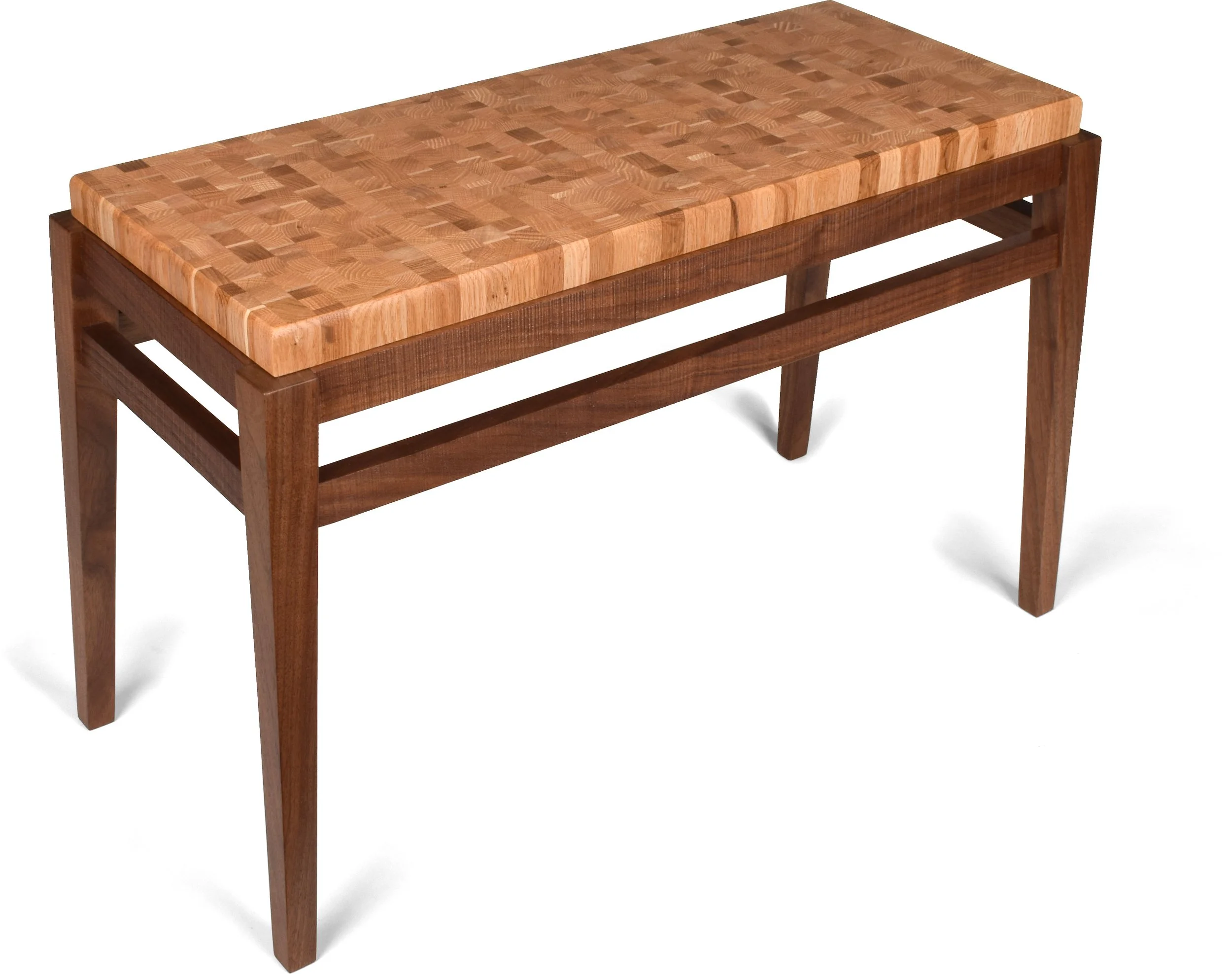 Devon Bench Artist: Michael Holton - Calgary AlbertaArtist’s Statement: This was the destruction of something to create something new. Size: 28in x 13in x 17inMaterials: Walnut, Red Oak, Maple