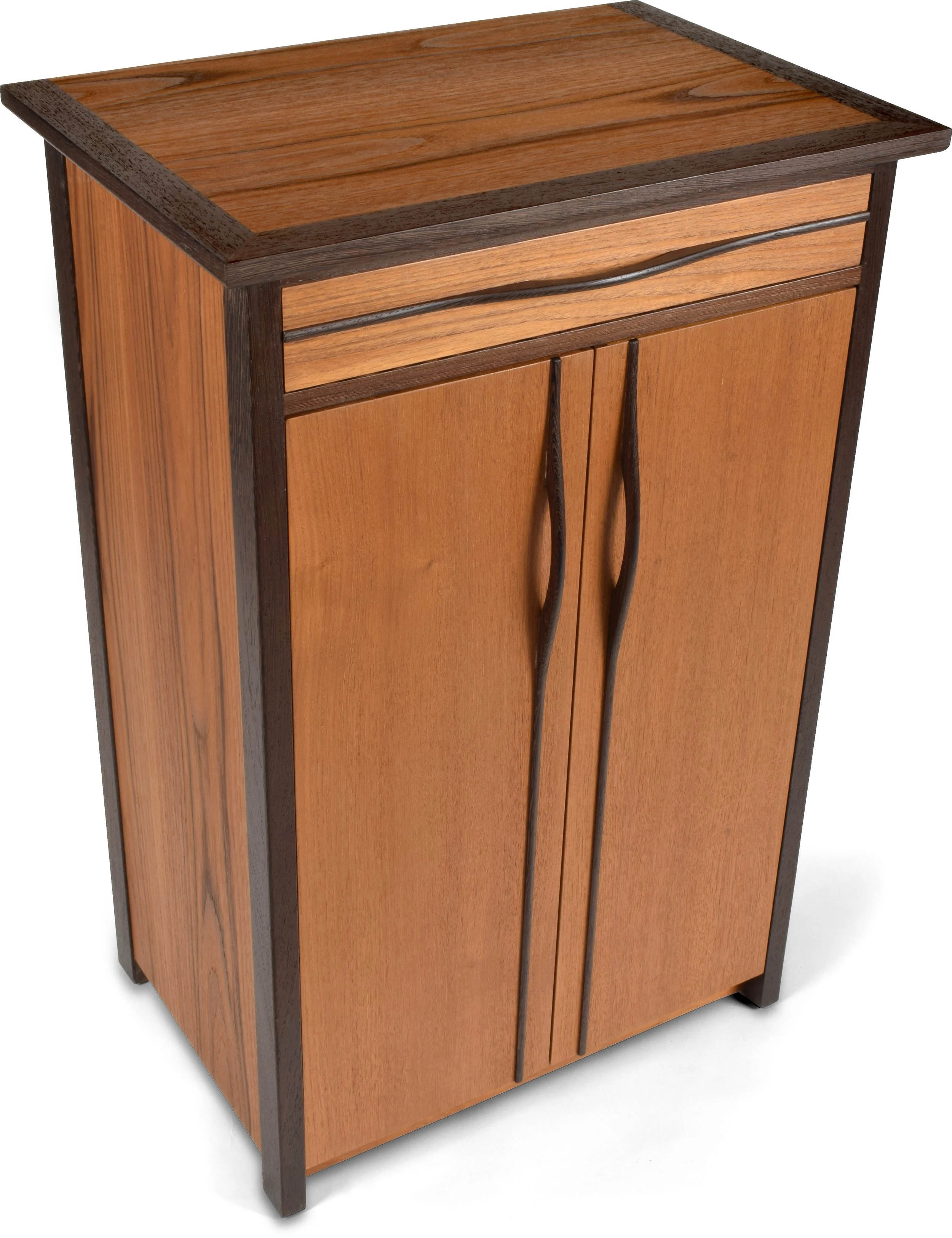 Cabinet Artist: Mike Mulvey - Calgary AlbertaArtist’s Statement: Nothing too outrageous -just a piece that would be at home almost anywhere.Size: 17in x 24in x 36inMaterials: Teak, Wenge